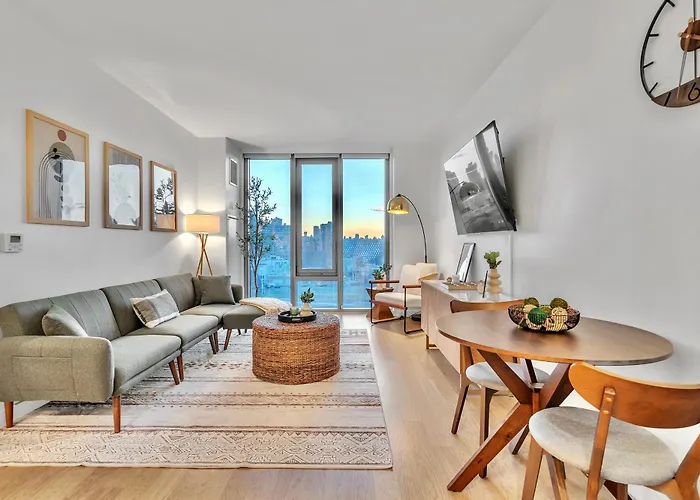 El Prime Nyc Waterfront Gem Apartamento, amueblado con un escritorio, está equipado con TV y TV de pantalla plana con canales vía satélite, climatizador. El apartamento de también incluye 1 baño. Además, en el cuarto de baño se proporcionan artículos de tocador para huéspedes.